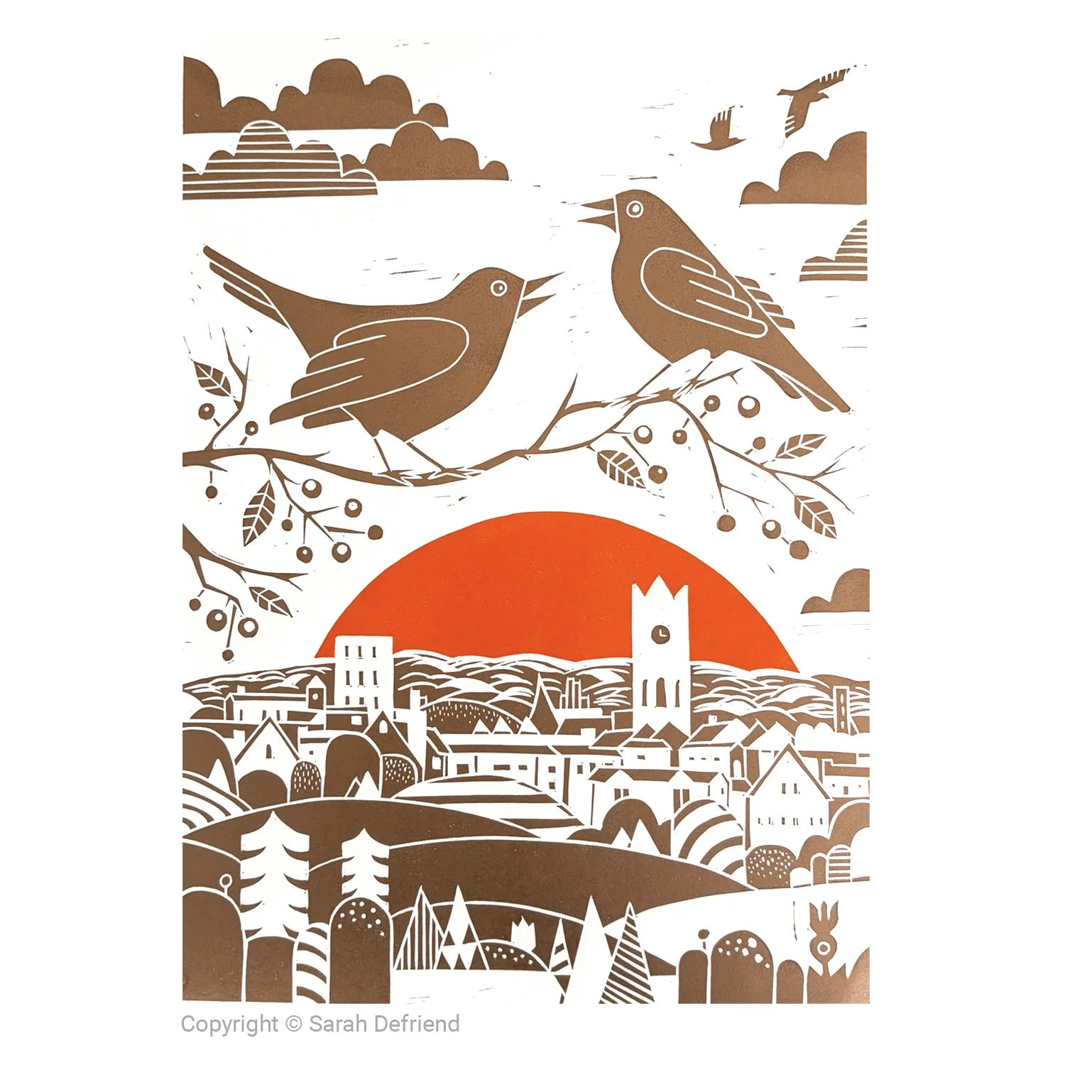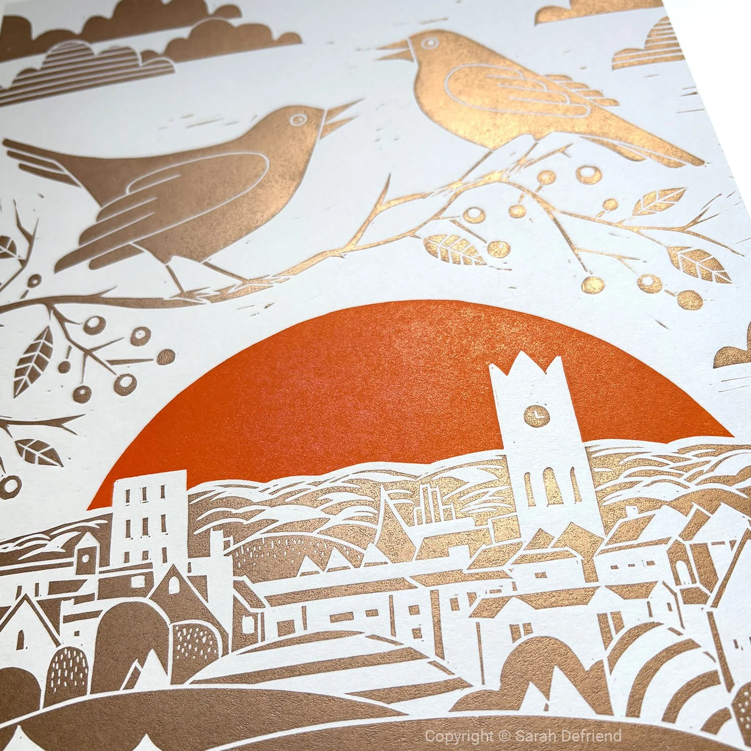 Seed House Creative approached me to create a special print design for their clients. The brief was a Scandinavian-inspired design, featuring blackbirds over a quaint little town. Over 60 prints were created, many of which I printed by hand without a press, making this my biggest print run to date!