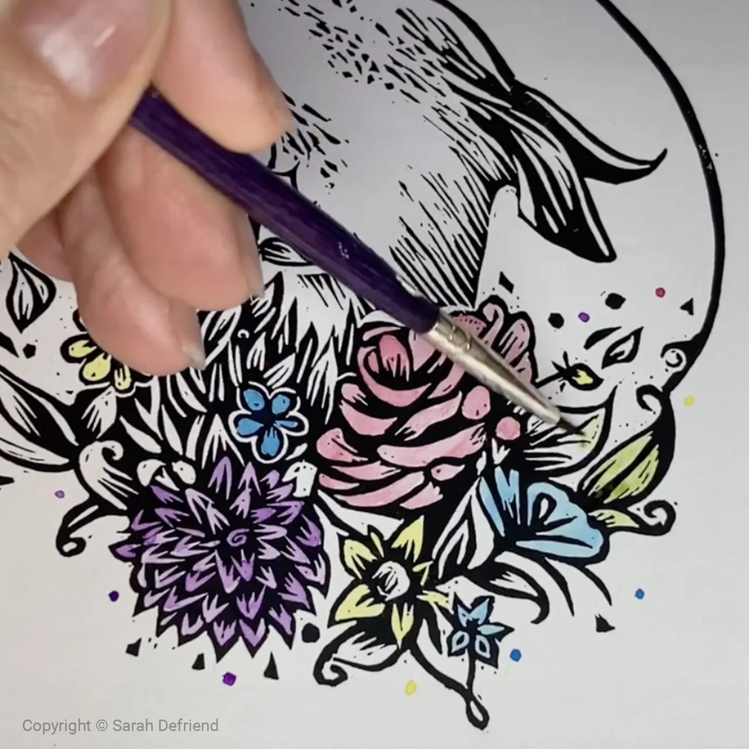 Hand-painted watercolour & Lino Print.