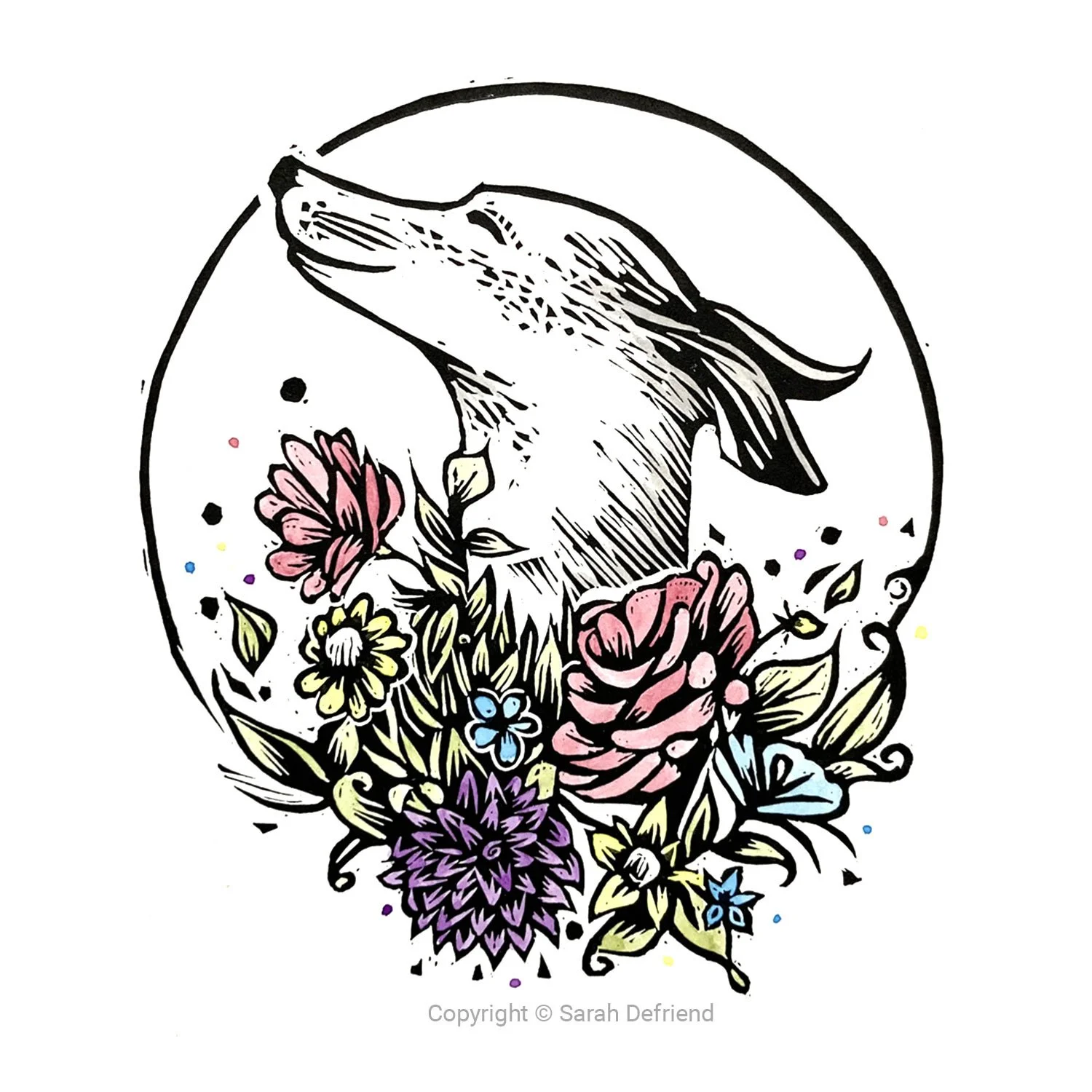 Inspired by my little whippet exploring a field of spring flowers, each of these prints are hand coloured using watercolour paints.
