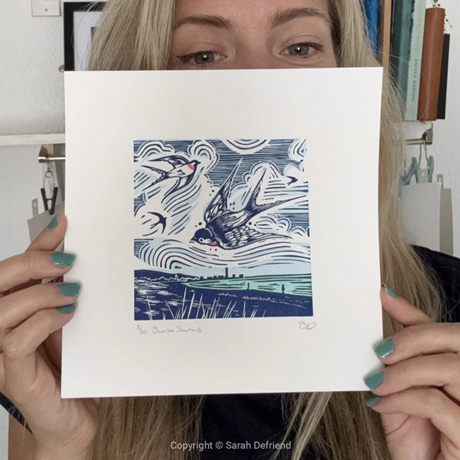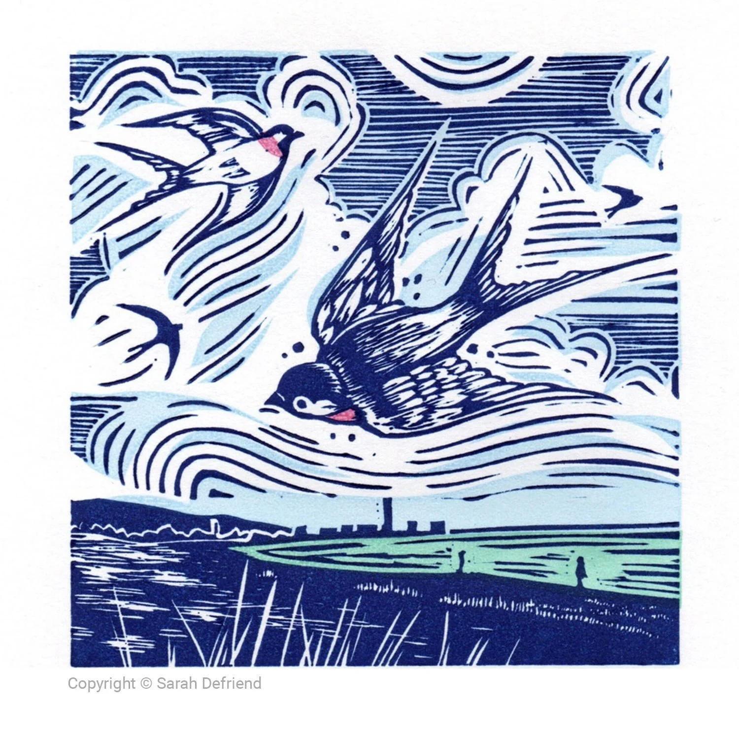 Originally based on my swallow sketches, inspired by Victorian book illustrations and my morning walks around Swansea Bay, I created this design for the second Mini Print Wales project.