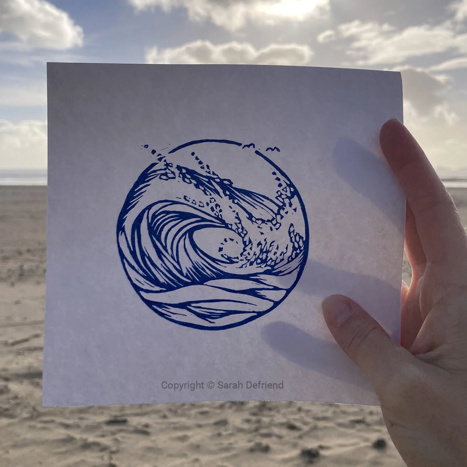 Inspired by my sea views of Swansea Bay and ‘The Great Wave’ by Katsushika Hokusai, I created ‘Y Ton’, which translates to ‘The Wave’ for the first Mini Print Wales project.