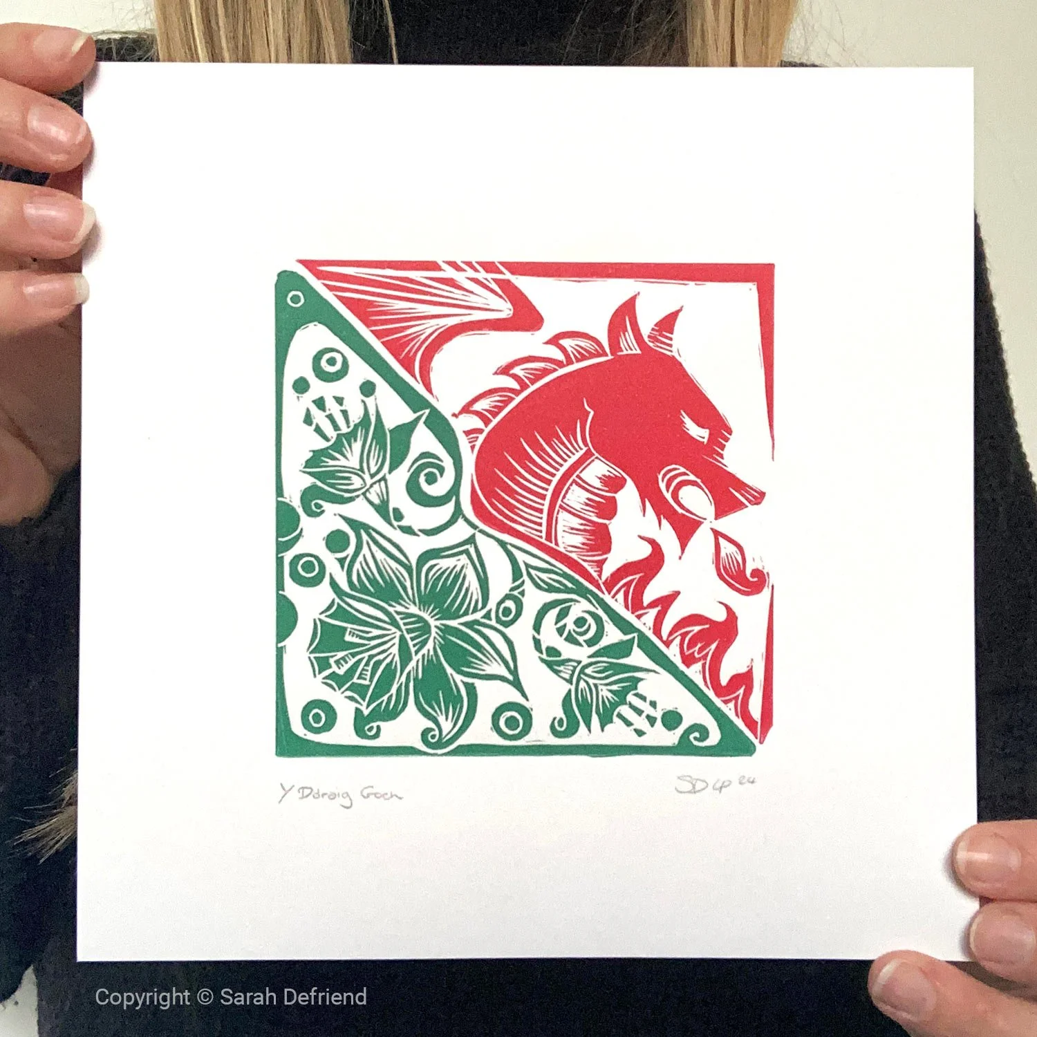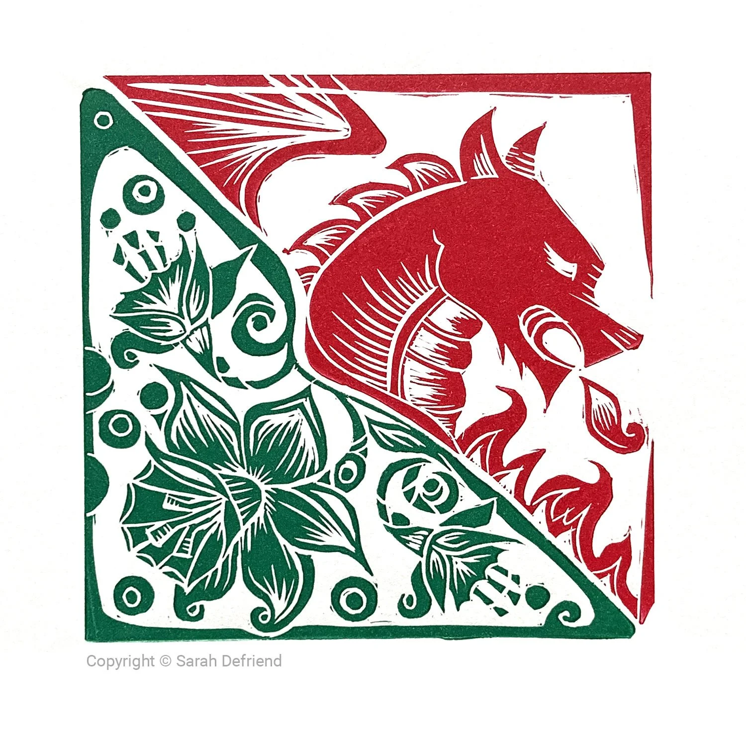 This print, ‘Y Ddraig Goch’ translates to ‘the Red Dragon’ for the first Mini Print Wales project.